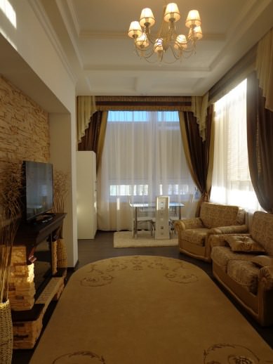 Просторный двухкомнатный «Люкс» с потрясающим видом, оборудованный камином и всей необходимой техникой для удобства и приятного отдыха наших гостей.