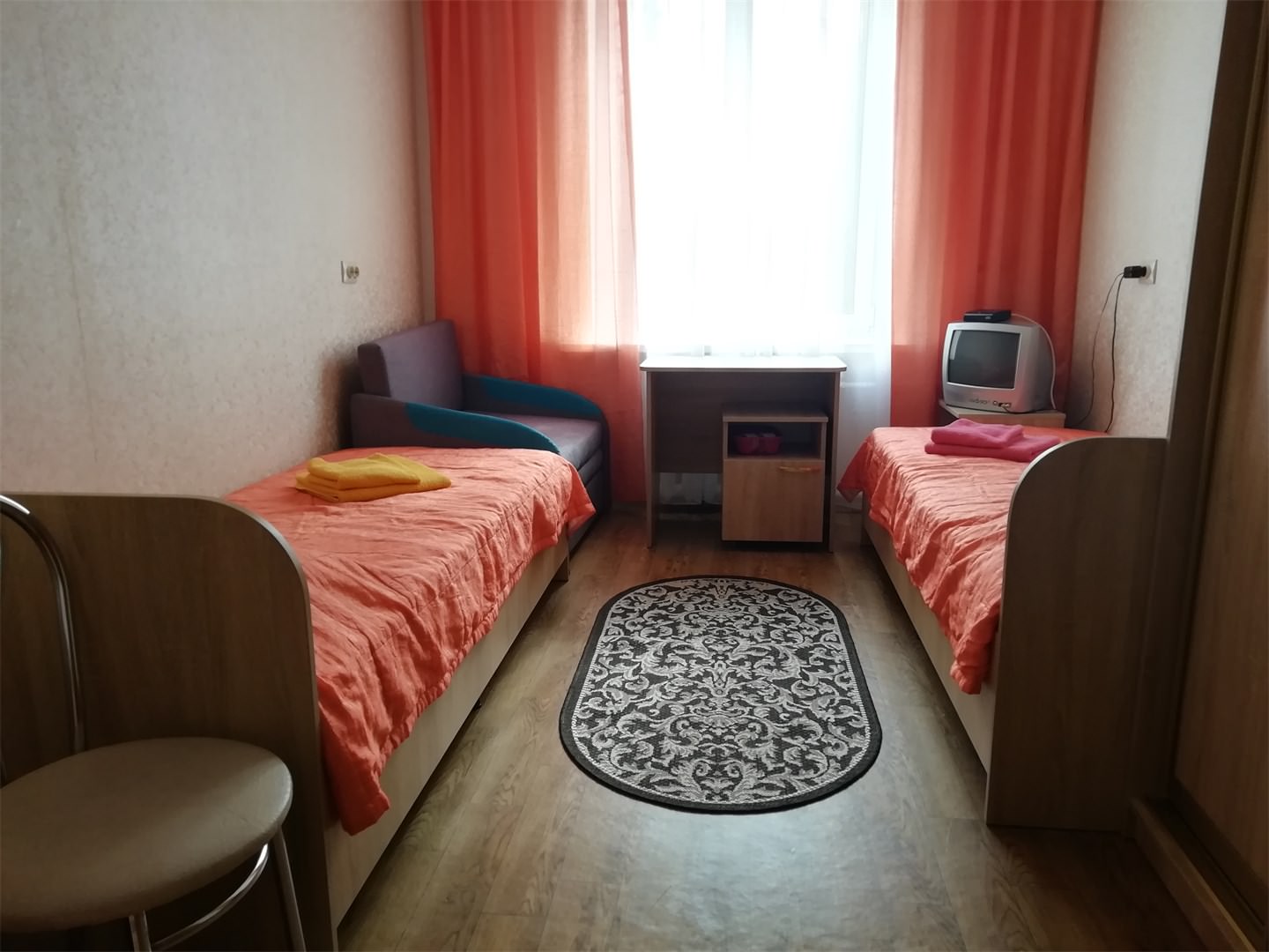 Скромный, но уютный номер с двумя раздельными кроватями для бюджетного отдыха. Есть возможность разместить третьего человека (евро-раскладушка).